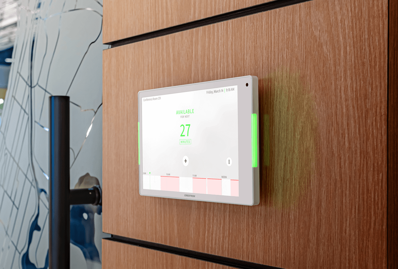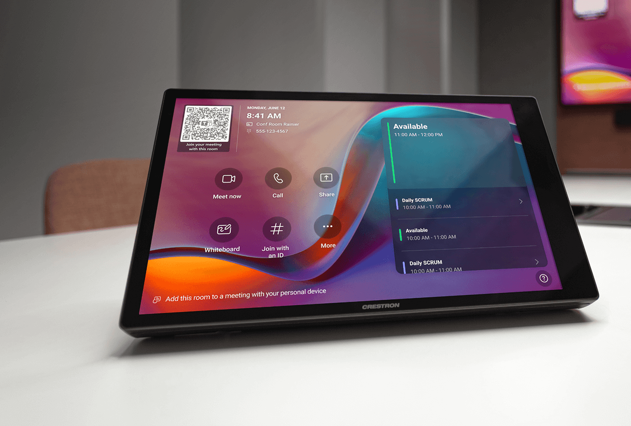 Performance has seen a significant upgrade, too: The 80 Series Touch Screens boast Crestron’s fastest processor yet — and radar-based proximity sensing that “wakes” the device when someone approaches, with no need to touch or tap. A new ambient light sensor automatically adjusts the screen brightness for optimal visibility and comfort in any lighting condition. As for sound, these devices include upgraded audio and intercom features, including far-field microphones and premium speakers, as well as a microphone mute button with an indicator that provides users with instant control over their privacy. Every device includes an Ethernet port with PoE and PoE+ for clean, single-cable installation and reliable wired performance. Wi-Fi® connectivity is available, too.