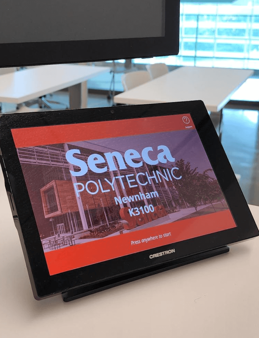 Seneca Polytechnic uses Crestron DM NVX® AV-over-IP technology for running content to displays in boardrooms and classrooms. The Crestron DM NVX platform provides flexibility by allowing users to continue adding devices to the system, and it simplifies distribution when multiple end points are present around the school.