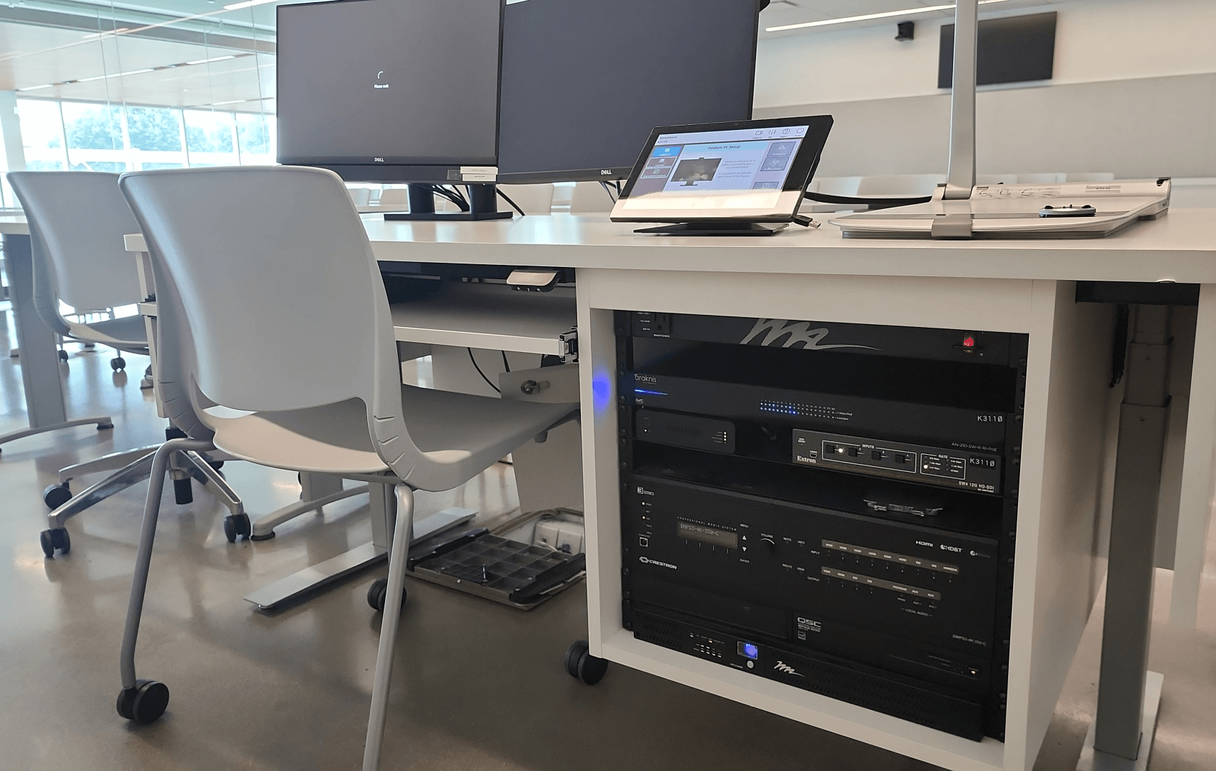 This recent deployment of new technology has drastically decreased support calls. ClearAlan introduced Microsoft Teams® software integration from the classroom touch screens to allow instructors to interact with technicians for support. This allows each classroom to post messages to the Microsoft Teams channel for instant support needs. The Microsoft Teams software functionality streamlines the troubleshooting process and lets technicians utilize tools to provide AV support quickly.