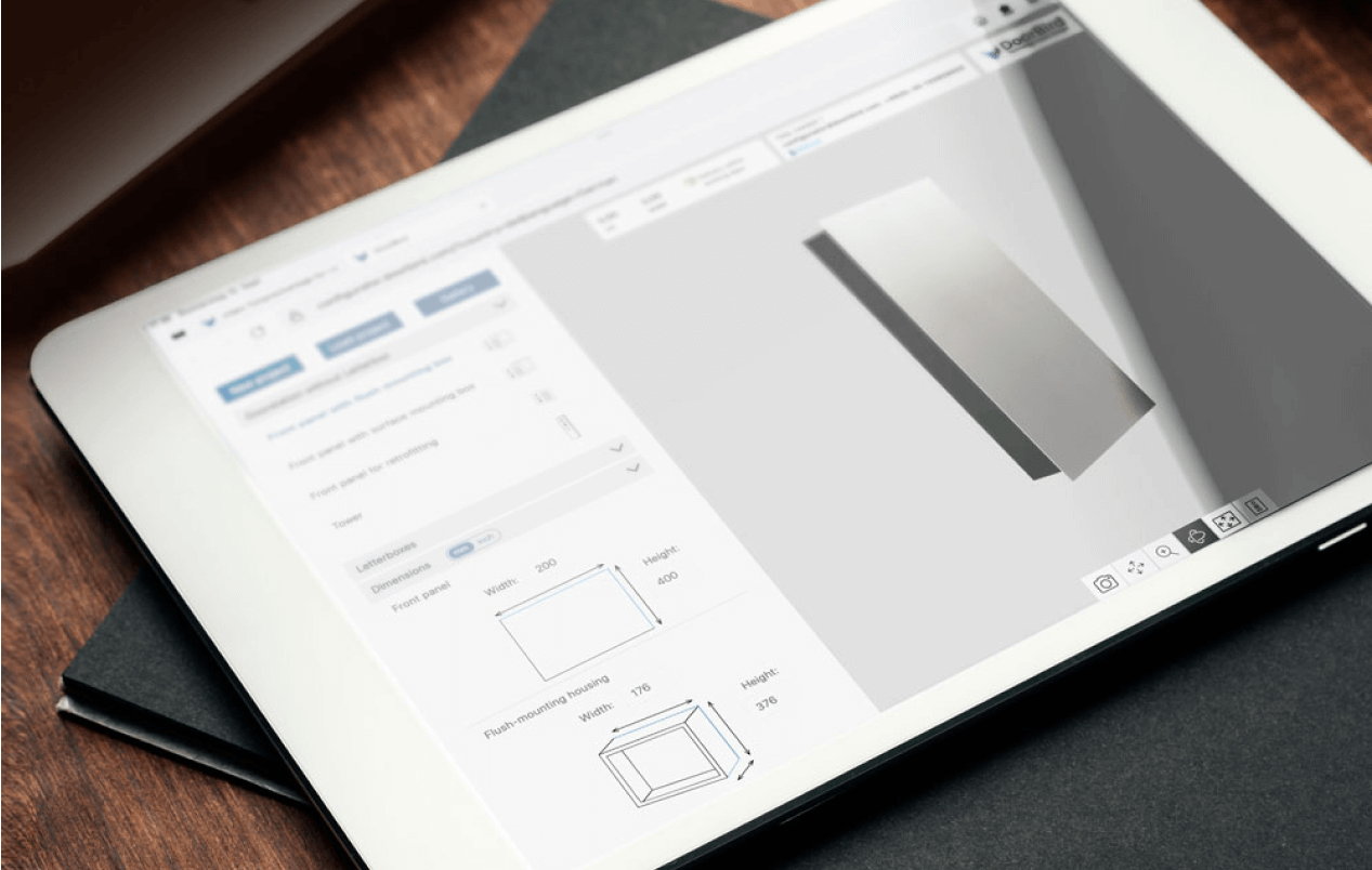 Special desires and requirements call for exceptional products. Using the DoorBird 3D-Configurator, you can choose the size and format you need, combine as many modules (display, keypad, fingerprint, letterboxes, etc.) as you want, and add engravings, special call buttons, and surfaces.