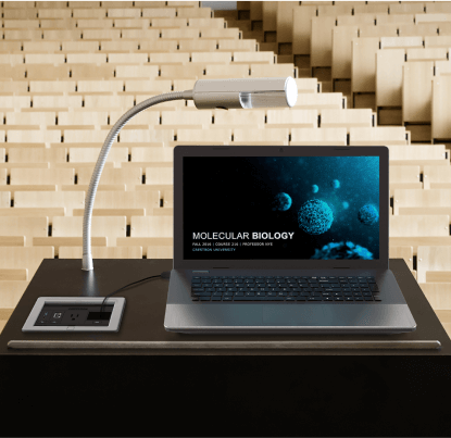 Pass-Through Lid Allows connections to be concealed with cables fully extended while the lid is closed, leaving surfaces and views unobstructed. |